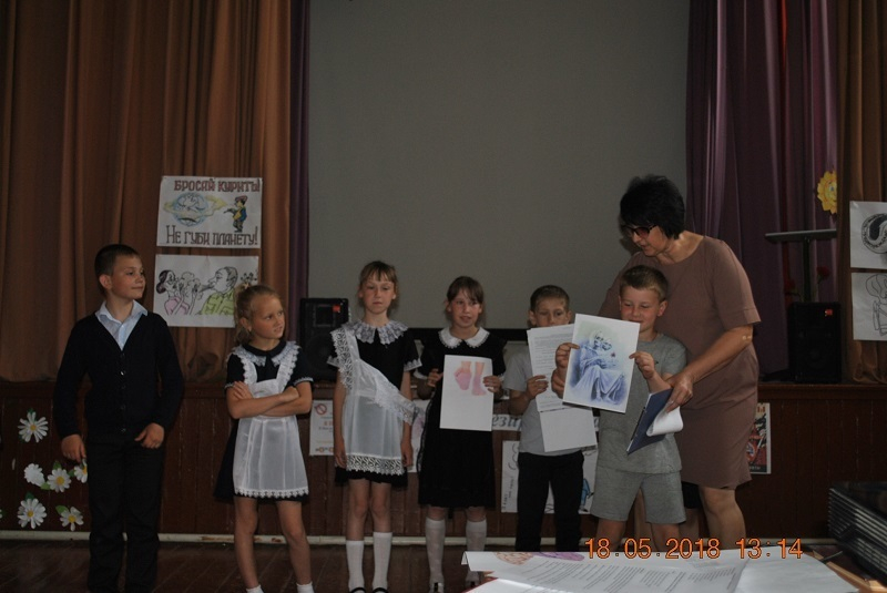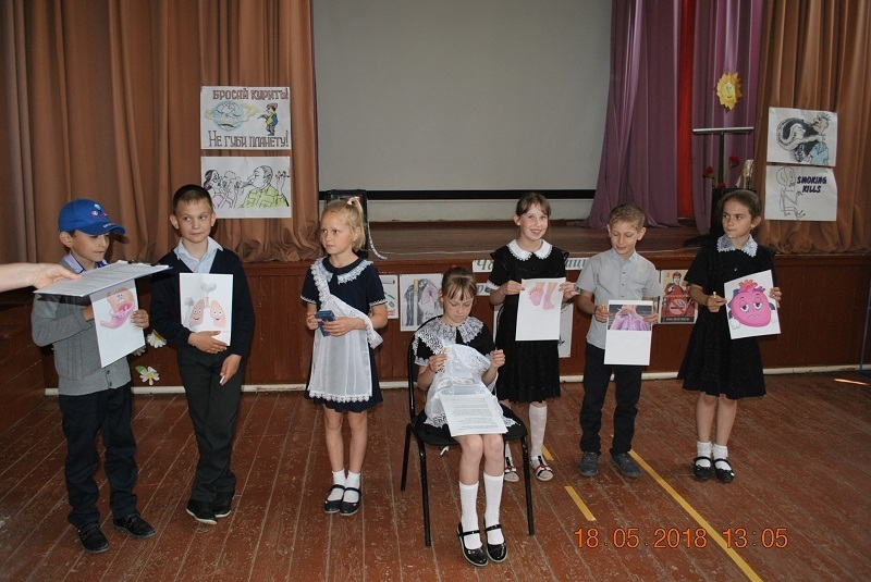 Восемнадцатого мая 2018 года в Вишневском сельском клубе прошел час информации «Я презираю сигарету!». Где ребятам были показаны видеоролики: «Ядовитые вещества, содержащиеся в табаке» и «Минздрав предупреждает – курение опасно для вашего здоровья!», ребята так же приняли участие в небольшой сценке. В которой Табак угощал Мозг, Сердце, Легкие, Желудок, Ноги, и Гортань выкурить сигаретку рассказывая им, что табак самое лучшее средство от стресса, но страшная и коварная Беда показала всем органам, что бывает с заядлыми курильщиками, какие опасности их подстерегают впереди и какие органы человека страдают от табака в первую очередь, если вовремя не отказаться от курения.