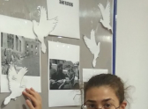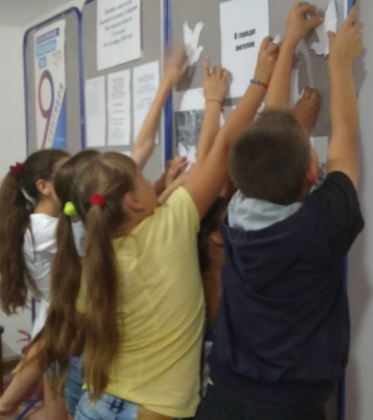 Присутствующие минутой молчания почтили память погибших в г. Беслане и других терактах. Они взяли в руки бумажных голубей и помолчали.