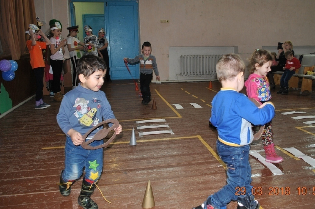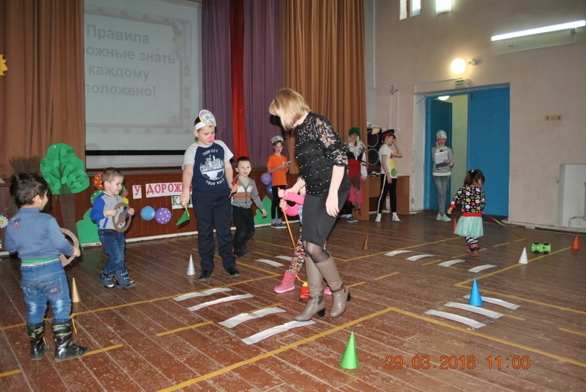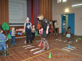 Во время игры ребята повторили основные дорожные знаки. После чего Светофор и Баба Яга провели веселые игры «Светофор», «Внимательный водитель», «Это я, это я, это все мои друзья» и эстафеты «Собери светофор», «Извилистая дорога», танцевали с детками под песенку Светофора и вместе со всеми участниками исполнили веселый танец «Светофор». Так же в ходе мероприятия были продемонстрированы обучающие мультфильмы для юных пешеходов.