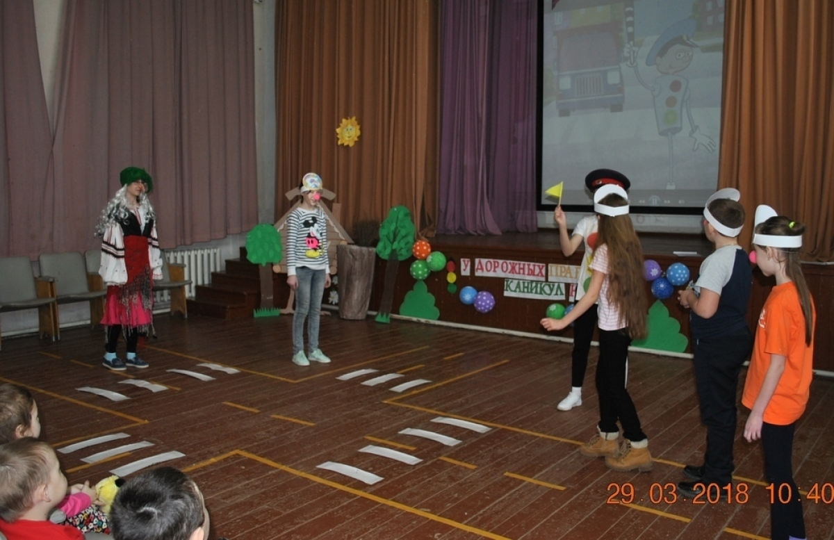 Двадцать девятого марта в Вишневском сельском клубе для воспитанников детского сада «Вишенка» культорганизатором Л.А.Ивановой совместно с воспитателем детского сада «Вишенка» В.Ю.Коротковой, была подготовлена и проведена конкурсная программа «У дорожных правил каникул нет». В которой Баба Яга, Светофор и юные инспектора дорожного движения из команды ЮИД в игровой форме показали малышам, как нужно вести себя на дороге. Баба Яга (Юлия Баимова) прилетевшая из дремучего леса не знала правила дорожного движения, а Светофор (Аня Кобзарь) и ребята из команды ЮИД (Лиза и Катя Власовы, Маша и Лёша Светневы) рассказали ребятам и Бабе Яге о правилах поведения на улице и проезжей части. Затем дети проиграли возможные ситуации на дороге, побывали в роли водителей и пешеходов.