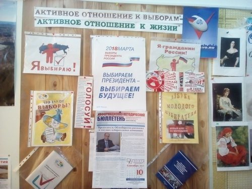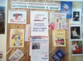 Дети познакомились с информационной стендом – выставкой: «Активное отношение к выборам – активное отношение к жизни!», где представлены были книжные издания, плакаты по правовой тематике.