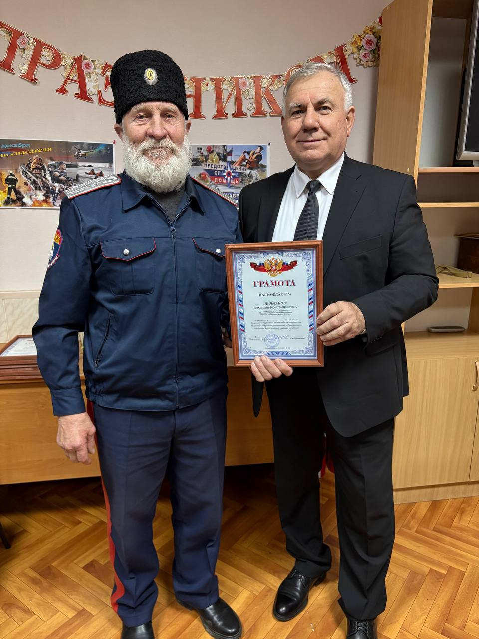- За активное участие и личный вклад в дело возрождения Донского казачества, за воспитание подрастающего поколения в духе славных казачьих традиций, особо отмечу: