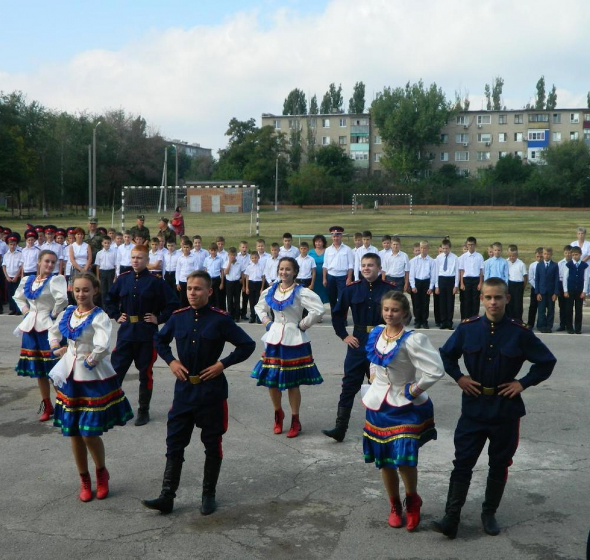Вокальная группа «Кадет» и хореографический коллектив «Лазоревая степь» поздравили всех присутствующих на линейке великолепным исполнением творческих номеров. Право дать первый звонок получил кадет взвода 5/1 Антон Алейников и воспитанник 11 взвода Николай Татаринов.