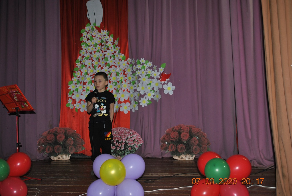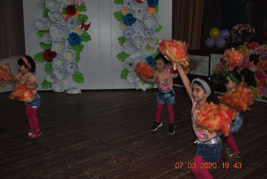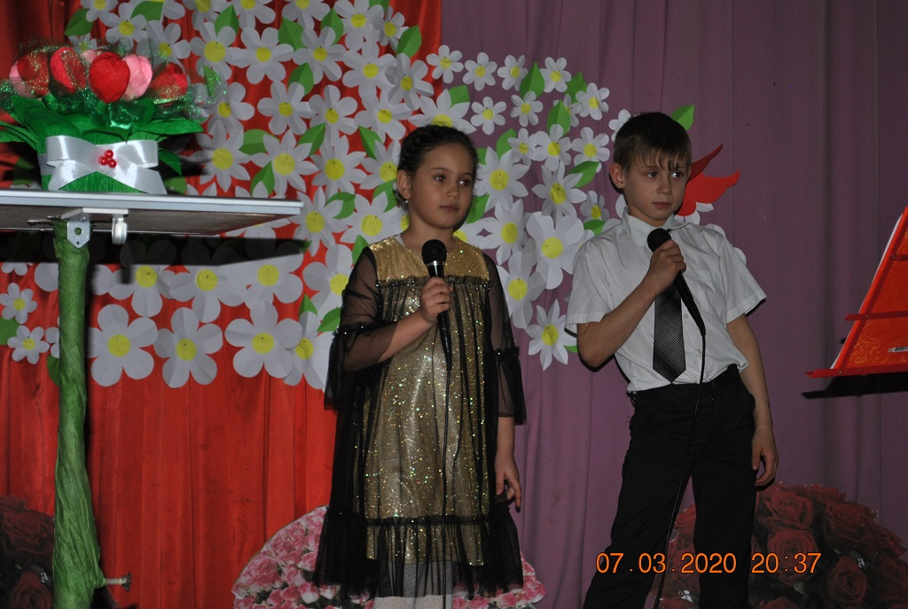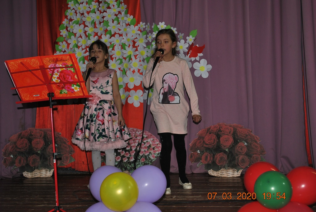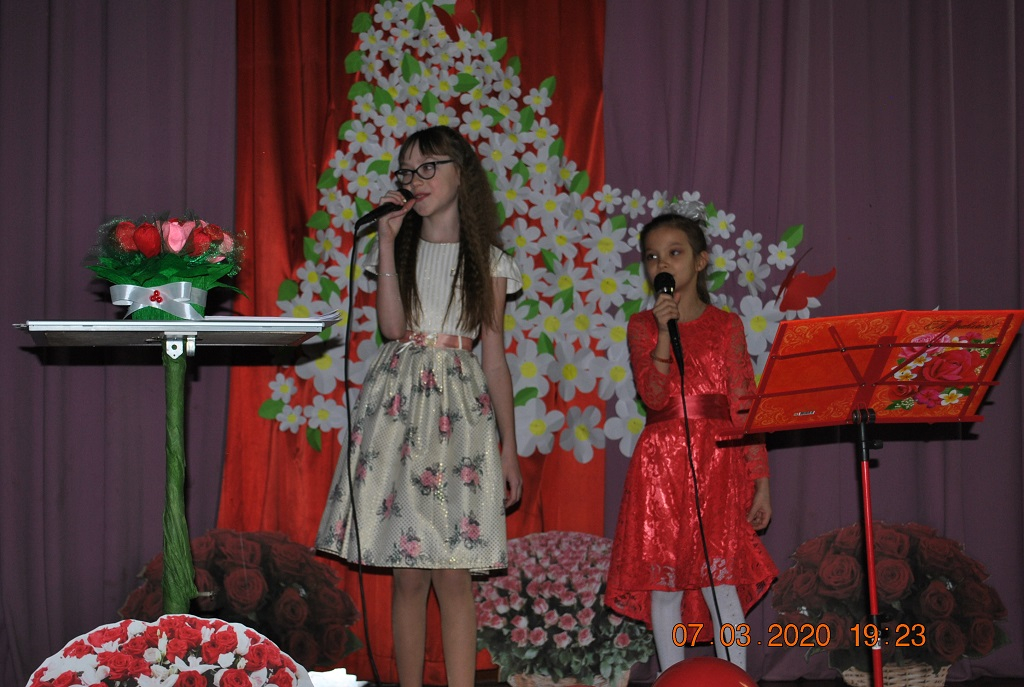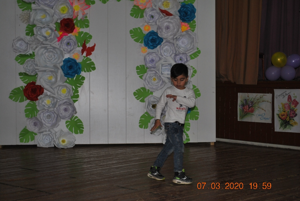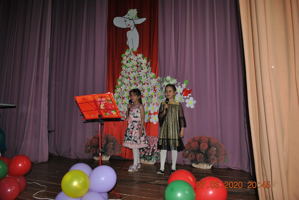 Были представлены красивые вокальные номера, подготовленные участниками художественной самодеятельности (К.Скрицкая, М.Бабаева, А.Савилова, Е.Козинкова, Е.Власова, А.Кобзарь, С.Напалко, С.Скрицкий, Л.Иванова, И.Гергиева, Т.И.Какиева) и танцевальные композиции в исполнении самых юных участников (М.Хасратова, С.Хасратова, С.Топалова, Э.Шахсаддинова,А.Турсунов). С.Хасратов в подарок мамам и бабушкам прочел красивое стихотворение. Гости получили много эстетического удовольствия.