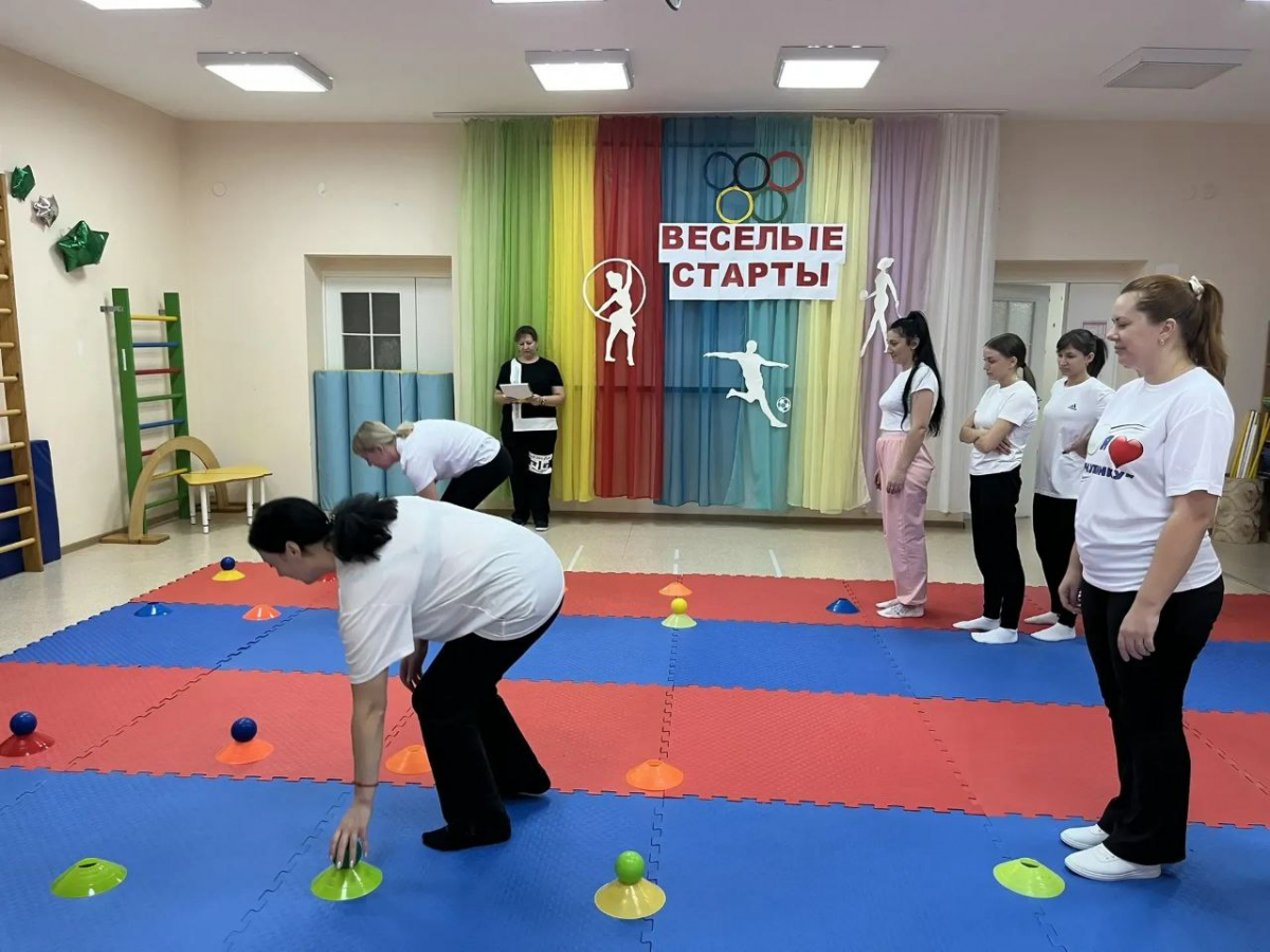 В детском саду «Жемчужинка» прошло яркое и энергичное мероприятие в рамках федерального проекта «Все лучшее детям» нацпроекта «Молодёжь и дети». На этот раз главными участниками спортивного досуга «Веселые старты» стали… мамы и сотрудники детского сада.