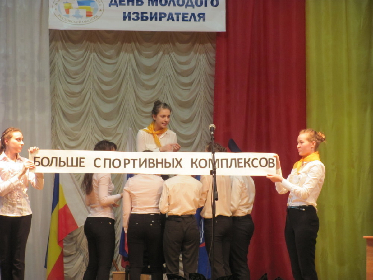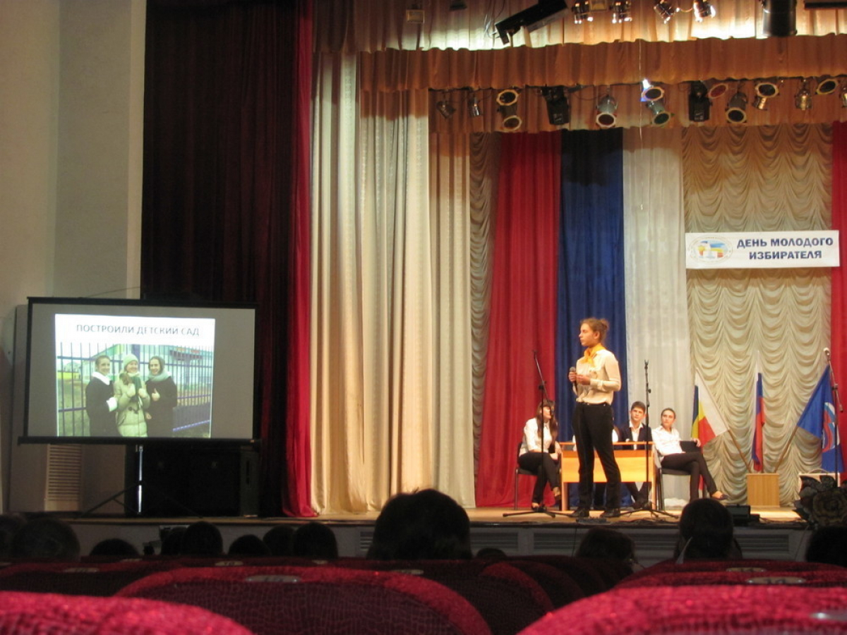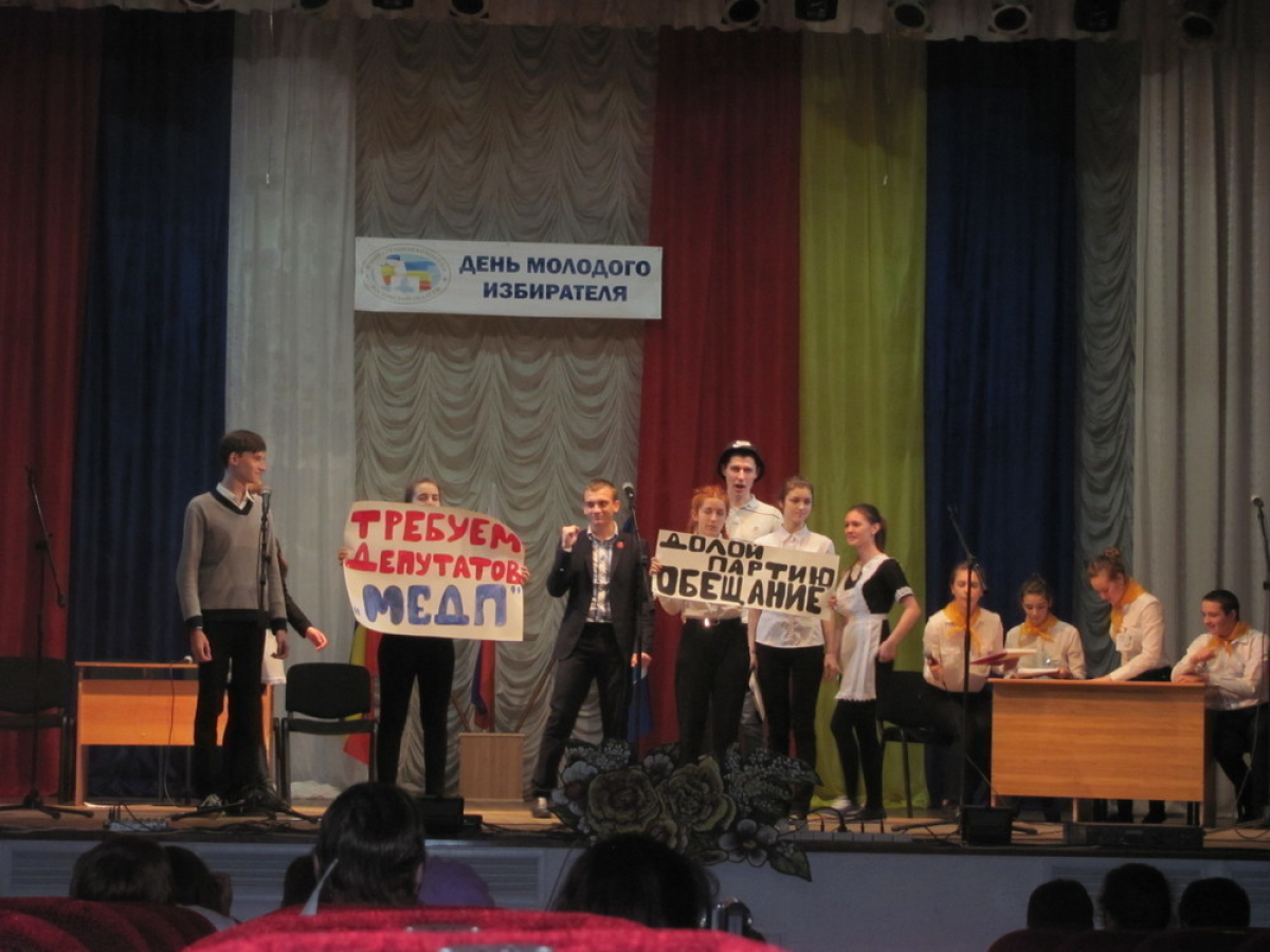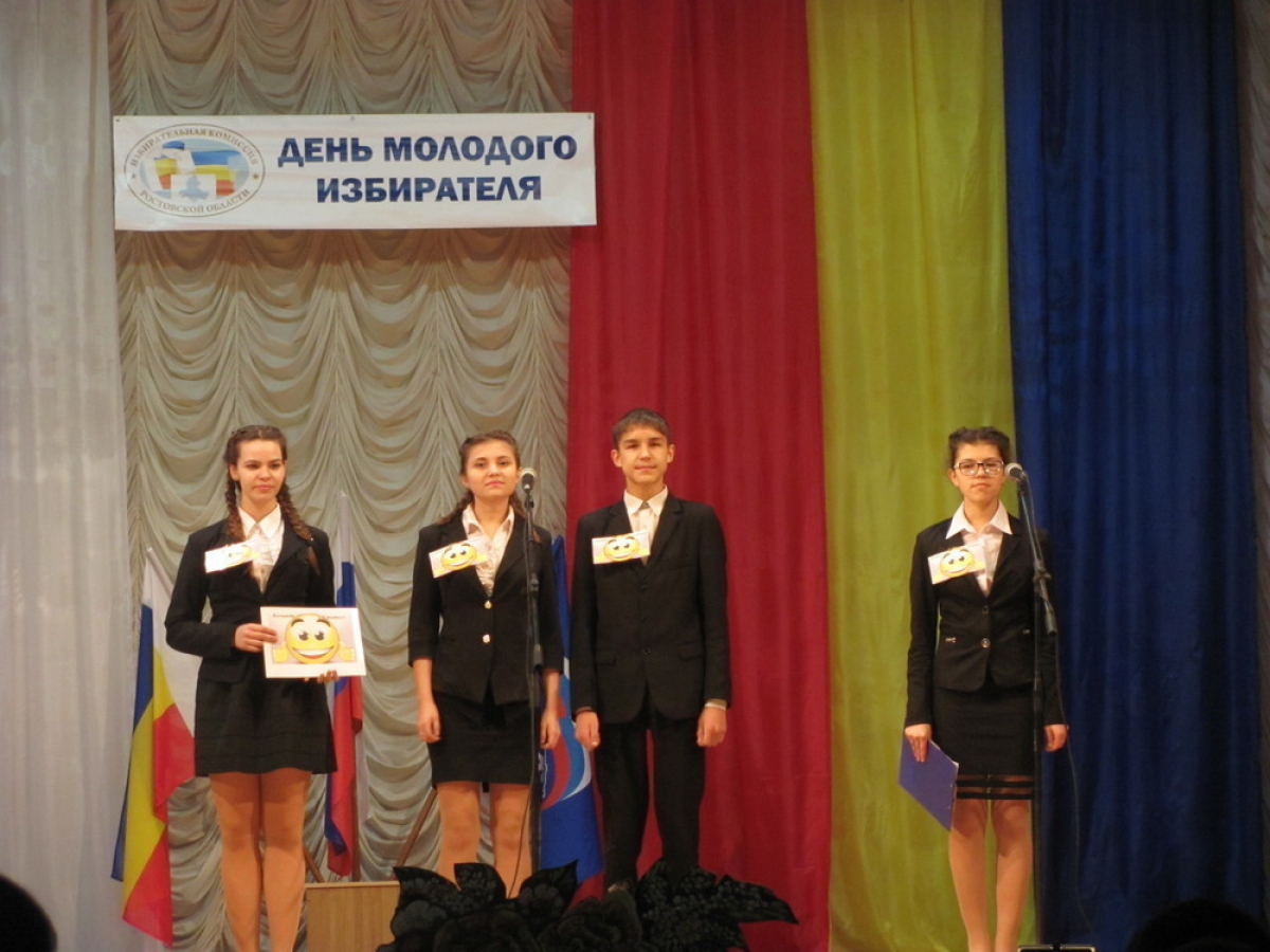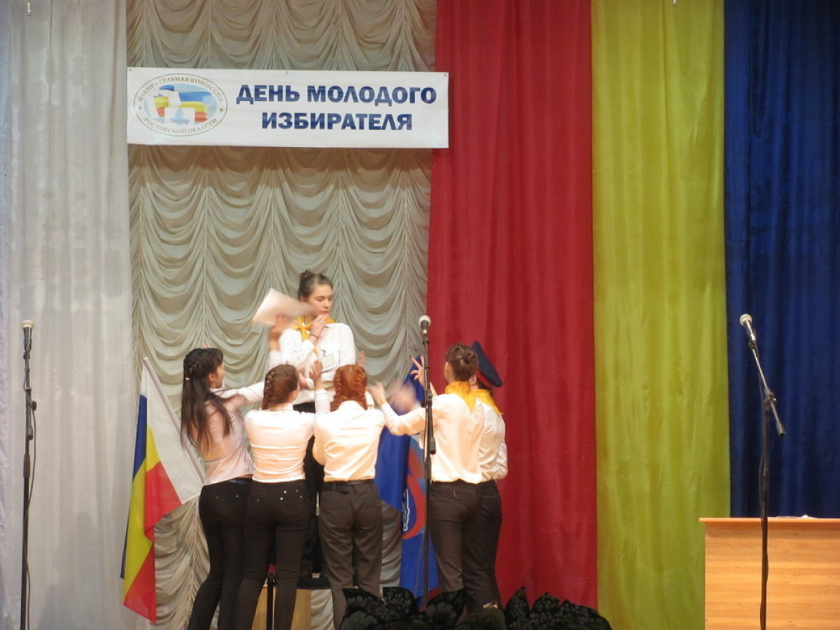 В музыкально-агитационном представлении в РДК, посвященном неделе Молодого Избирателя «Минута кандидата» приняли участие 7 команд из всех школ Морозовска. Каждая из них представила особую программу, интересную и увлекательную.