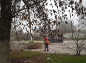 Управление городского хозяйства провело очередную обрезку сухих веток деревьев вдоль тротуаров, чтобы обезопасить жителей и защитить городскую инфраструктуру.
