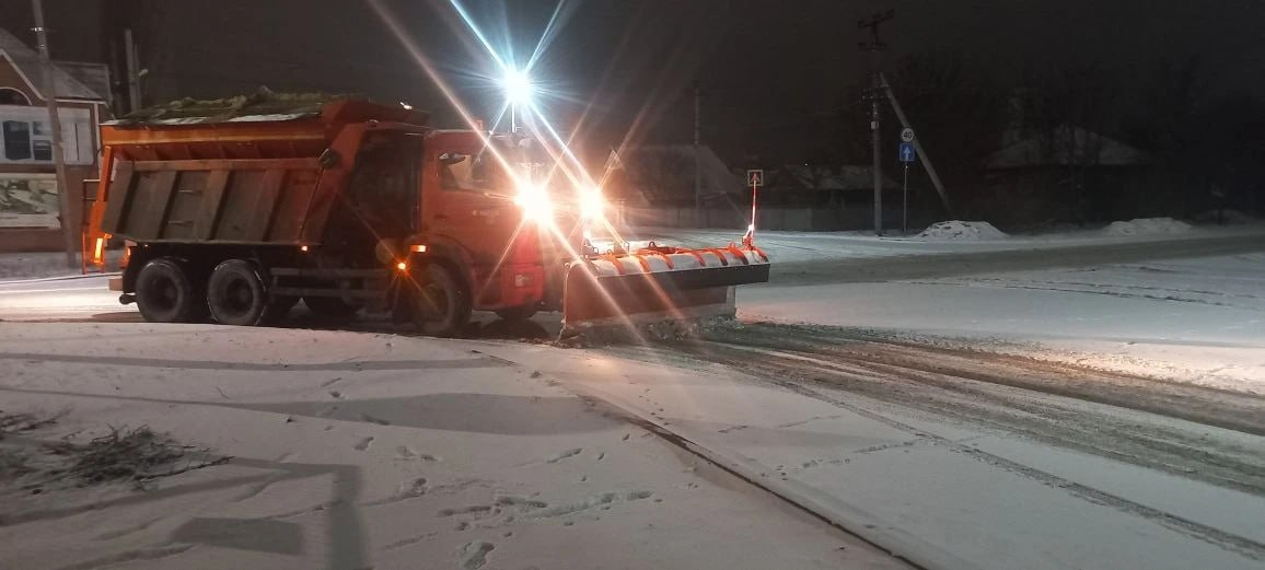 В Морозовске вышли на ночную борьбу со снегом