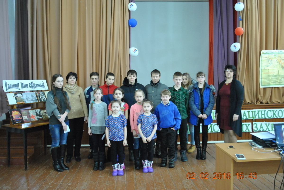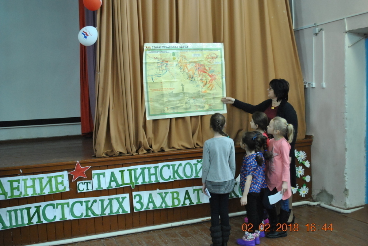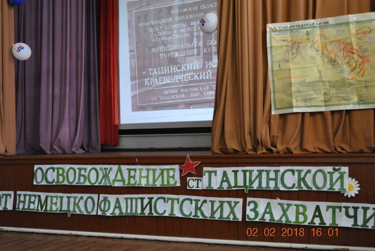 Второго февраля 2018 год в Вишневском СК для жителей нашего хутора, культорганизатор Л.А.Иванова совместно с библиотекарем Н.Д.Ткачевой провели час памяти, посвященный 75 годовщине «Освобождения ст. Тацинской от немецко – фашистских захатчиков». В ходе мероприятия для всех присутствовавших была показана электронная презентация «Тацинский танковый рейд», была совершена виртуальная экскурсия в Тацинский краеведческий музей, прозвучали песни военных лет «Священная война», «Нам нужна одна Победа», «На поле танки грохотали», песни с которыми наши воины вступали в смертный бой с врагами защищая каждый кусочек родной земли. Учащиеся Вишневской ООШ Александра Виниченко, Сабрина Шахсоддинова, Елизавета Власова, Даниил Макарь и Полина Фоменко читали стихи о Великой Отечественной Войне.